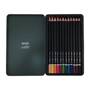 Set 12 creioane color hexagonale SPREE cutie metal